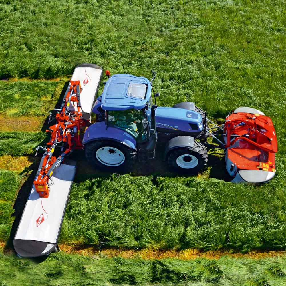 Le girofalciatrici e falciacondizionatrici di grande larghezza della gamma KUHN hanno molti punti in comune, per garantirvi di falciare la totalità del vostro foraggio con la massima qualità: dispositivo di alleggerimento LIFT-CONTROL, barra di taglio OPTIDISC, disassamento laterale e molte altre attrezzature opzionali.